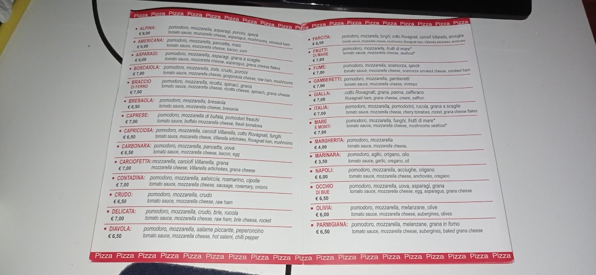 Stop & Go di Roberto Fenaroli offers a straightforward and inviting menu centered around classic Italian pizza, perfect for those looking to enjoy familiar flavors in a relaxed setting. The selection features a range of pizzas crafted with fresh ingredients, including tasty options like the Pizza Saporita and the vibrant Pizza Verdure.